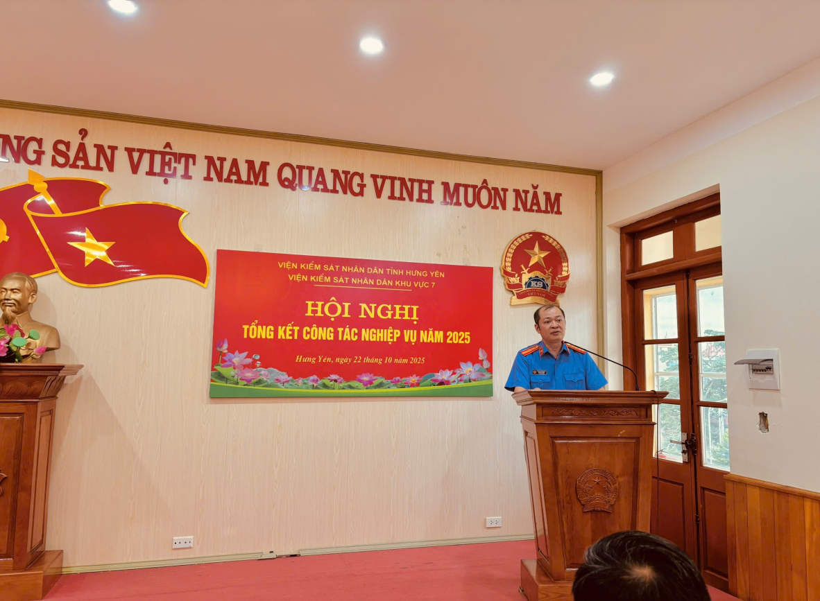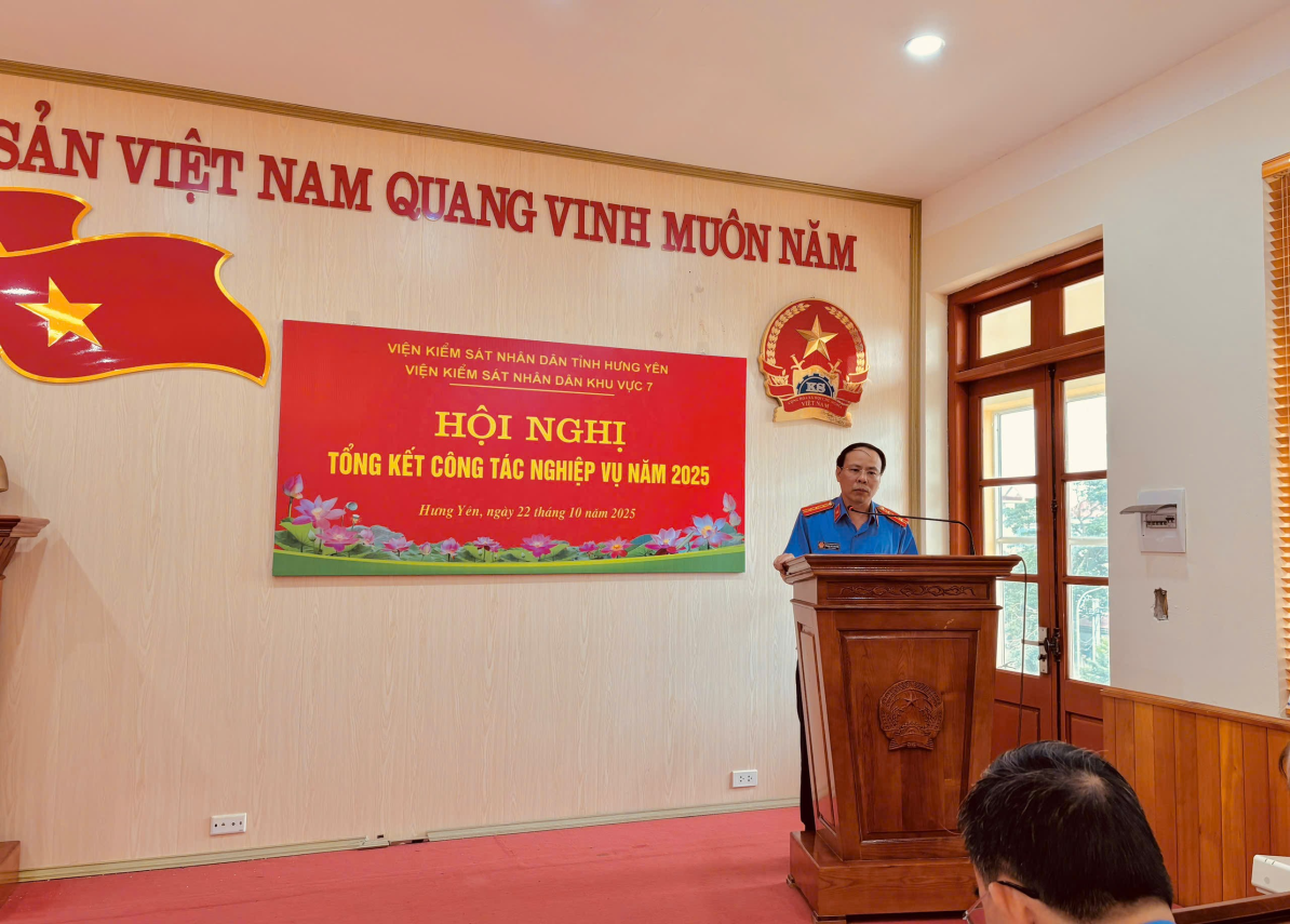 Thực hiện chỉ đạo của Viện trưởng Viện kiểm sát nhân dân (VKSND) tỉnh Hưng Yên, chiều ngày 22/10/2025, VKSND khu vực 7, tỉnh Hưng Yên đã tổ chức Hội nghị tổng kết công tác nghiệp vụ năm 2025 nhằm đánh giá những kết quả đạt được, chỉ ra những hạn chế, thiếu sót và nguyên nhân; thảo luận nhằm đưa ra giải pháp, phương hướng, biện pháp tổ chức thực hiện chỉ tiêu, kế hoạch công tác năm 2026.