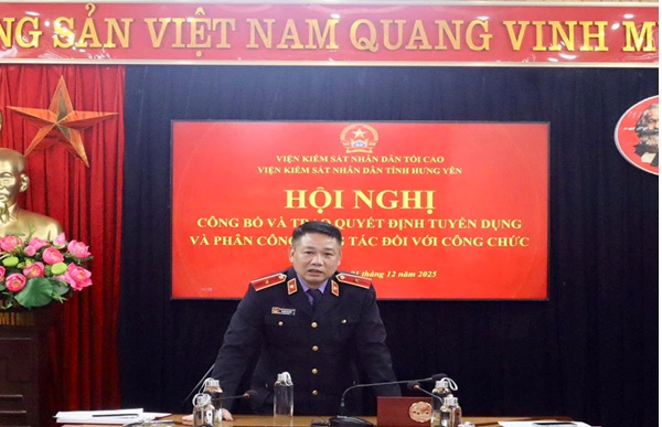 Ngày 01/12/2025, Viện kiểm sát nhân dân tỉnh Hưng Yên tổ chức Hội nghị công bố và trao Quyết định tuyển dụng, phân công công tác đối với 07 công chức trúng tuyển trong kỳ thi tuyển công chức nghiệp vụ kiểm sát ngành Kiểm sát nhân dân năm 2025.