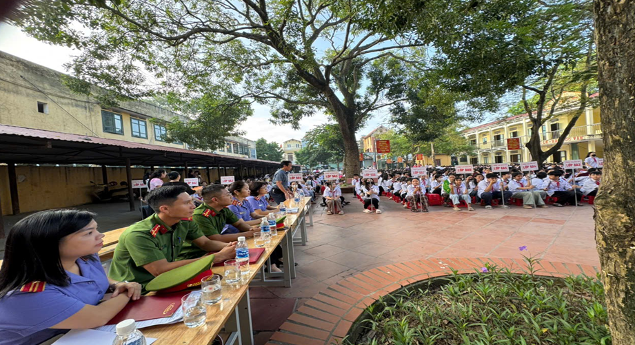Tham dự buổi tuyên truyền có đại diện lãnh đạo VKSND khu vực 2- Hưng Yên, lãnh đạo Công an phường Mỹ Hào, Ban giám hiệu nhà trường, các thầy cô giáo cùng toàn thể 1.235 các em học sinh.