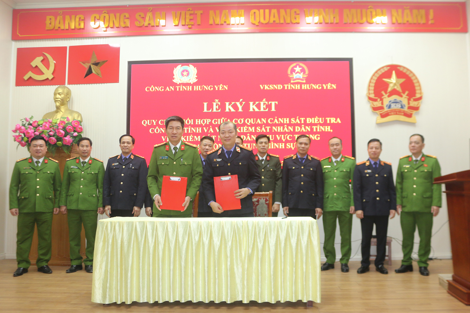 Chiều ngày 01/12/2025, tại trụ sở VKSND tỉnh Hưng Yên, VKSND tỉnh chủ trì tổ chức Lễ ký kết Quy chế phối hợp liên ngành giữa Viện kiểm sát hai cấp tỉnh Hưng Yên với Cơ quan Cảnh sát điều tra tỉnh trong hoạt động tố tụng hình sự.