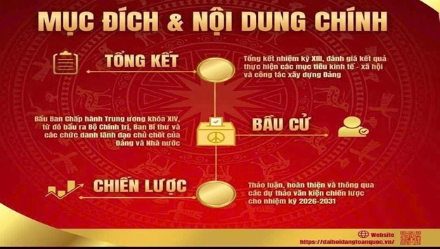 Đại hội XIV của Đảng có nhiệm vụ tổng kết việc thực hiện Nghị quyết Đại hội XIII, đánh giá sâu sắc những kết quả đạt được, chỉ rõ những hạn chế, nguyên nhân và rút ra bài học kinh nghiệm; đồng thời xác định phương hướng, mục tiêu, nhiệm vụ và giải pháp phát triển đất nước trong nhiệm kỳ mới và những năm tiếp theo. Các văn kiện trình Đại hội XIV thể hiện tư duy đổi mới, tầm nhìn chiến lược, khát vọng phát triển đất nước phồn vinh, hạnh phúc; tiếp tục khẳng định mục tiêu độc lập dân tộc gắn liền với chủ nghĩa xã hội.