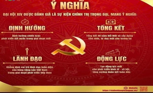 Đại hội đại biểu toàn quốc lần thứ XIV của Đảng Cộng sản Việt Nam là sự kiện chính trị đặc biệt quan trọng của đất nước, có ý nghĩa to lớn trong việc định hướng con đường phát triển của đất nước trong giai đoạn mới, là dấu mốc tiếp nối 40 năm chặng đường đổi mới toàn diện, khẳng định vai trò lãnh đạo của Đảng trong sự nghiệp xây dựng và bảo vệ Tổ quốc Việt Nam xã hội chủ nghĩa.