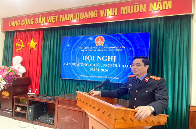 Chiều ngày 03/02/2026, Viện kiểm sát nhân dân khu vực 8, tỉnh Hưng Yên đã tổ chức Hội nghị công chức, người lao động năm 2026 nhằm phát huy quyền làm chủ của công chức, người lao động thông qua việc thảo luận, tham gia ý kiến, quyết định và kiểm tra, giám sát các vấn đề ở đơn vị theo đúng quy định và tinh thần của Luật thực hiện dân chủ cơ sở. Dự và chỉ đạo Hội nghị có đồng chí Phạm Đức Hoành - Bí thư Chi bộ, Viện trưởng Viện kiểm sát nhân dân khu vực 8; với sự tham dự của các đồng chí Lãnh đạo đơn vị cùng toàn thể công chức, người lao động trong đơn vị.