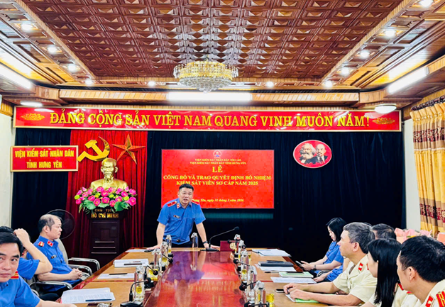Tại buổi Lễ, đồng chí Vũ Văn Hậu, Trưởng phòng Tổ chức cán bộ Viện kiểm sát nhân dân tỉnh Hưng Yên công bố các Quyết định của Viện trưởng Viện kiểm sát nhân dân tối cao bổ nhiệm chức danh Kiểm sát viên sơ cấp cho 7 đồng chí. Các quyết định trên có hiệu lực từ ngày 01/4/2026.