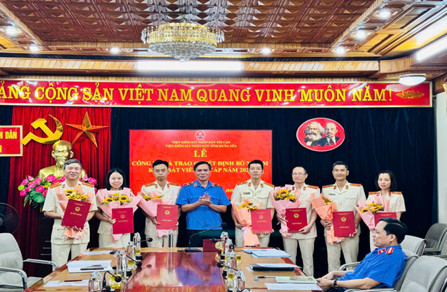 Thực hiện sự chỉ đạo của Đảng ủy, sáng ngày 31/3/2026 Viện kiểm sát nhân dân tỉnh Hưng Yên long trọng tổ chức Lễ công bố và trao Quyết định của Viện trưởng Viện kiểm sát nhân dân tối cao về việc bổ nhiệm chức danh Kiểm sát viên sơ cấp năm 2025 cho 7 đồng chí thuộc Viện kiểm sát nhân dân các khu vực 1, khu vực 3, khu vực 5 và khu vực 8.