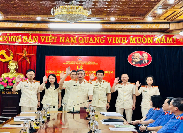 Thực hiện quy định tại Điều 85 Luật Tổ chức Viện kiểm sát nhân dân ngày 24/11/2024; Luật sửa đổi, bổ sung một số điều của Luật Tổ chức Viện kiểm sát nhân dân ngày 24/6/205, đồng chí Phạm Văn Việt đại diện cho 7 đồng chí được bổ nhiệm chức danh Kiểm sát viên sơ cấp tuyên thệ: Tuyệt đối trung thành với Tổ quốc, tận tụy phục vụ nhân dân; Đấu tranh không khoan nhượng với mọi tội phạm vi phạm pháp luật; Kiên quyết bảo vệ Hiến pháp, pháp luật, lẽ phải và công bằng xã hội; không ngừng phấn đấu, học tập và làm theo lời dạy của Chủ tịch Hồ Chí Minh “Công minh, chính trực, khách quan, thận trọng, khiêm tốn”; Nghiêm chỉnh chấp hành kỷ luật, nguyên tắc tổ chức hoạt động của Viện kiểm sát nhân dân.